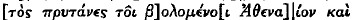 page 269 note 12 e.g. in the Cleinias decree, lines 31 ff.:![]()