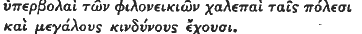 page 105 note 10 Dittenberger, Syll.3, 434 Chremonidean decree, 1. 30. Cf. also 1. 60: ![]()