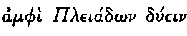 page 351 note 4  There is no error in Rh. 529 ff. (as stated in AIGT, 132). The error was the failure of Crates, according to the scholiast, to take αỉθ⋯ιαι as predicative, so that he thought that Euripides was describing the Pleiades as setting. [For πρωταI should prefer πρωταc  ]