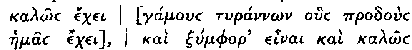 page 363 note 2 ⋯k⋯ιο refers to the same thing in 516 and 522, viz. the demagogy of Odysseus who knows about the marriage-plot. Agamemnon speaks allusively, and Menelaus has to force him to say what he means. Even then Aga-memnon is inexplicit (τάδε 524: cf. 106) until further pressed. This is a well-characterized fraternal exchange. The interpolator, having seriously mistaken the point, tried to answer the question in 517, and to ‘clarify’ ṳkεινο in 516. Cf. Med. 778 (p. 355, n. 2).