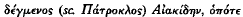 It is not clear whether this implies that Patroclus will take over after Achilles has finished singing.