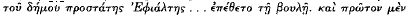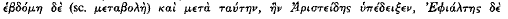 eimopwv in counterbalance to Ephialtes though all the opposed political pairings of leading personalities in this chapter look equally artificial and oversimplified. For present purposes there is no need to discuss the possibility of mutiple sources of differing political tendency e.g. Kleidemos and Androtion though the suggestion has often enough been made and is by no means implausible. On the other hand, there is no support for it in 41.2: ![]()