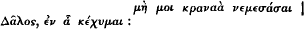 page 157 note 2 I have not space to discuss Mr. Lendrum's examples, but must demur to his translating Isthm. I. 4: : ‘may I escape the wrath of Delos, where I have drifted.’ He compares Pyth. IV. 43, ‘where the same words are used literally of the clod which … drifted to the shore of Thera: .’ There seems some confusion here. Medea has already said that the clod drifted (1. 40); she now says that the ‘seed is strown’ on Thera, i.e. the clod has been cast ashore there.
