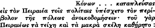 page 248 note 1 The same mistake is made in Baedeker's Greece, p. 21: ‘The fortifications of Athens and the Piraeus and also the Long Walls uniting them were demolished.’