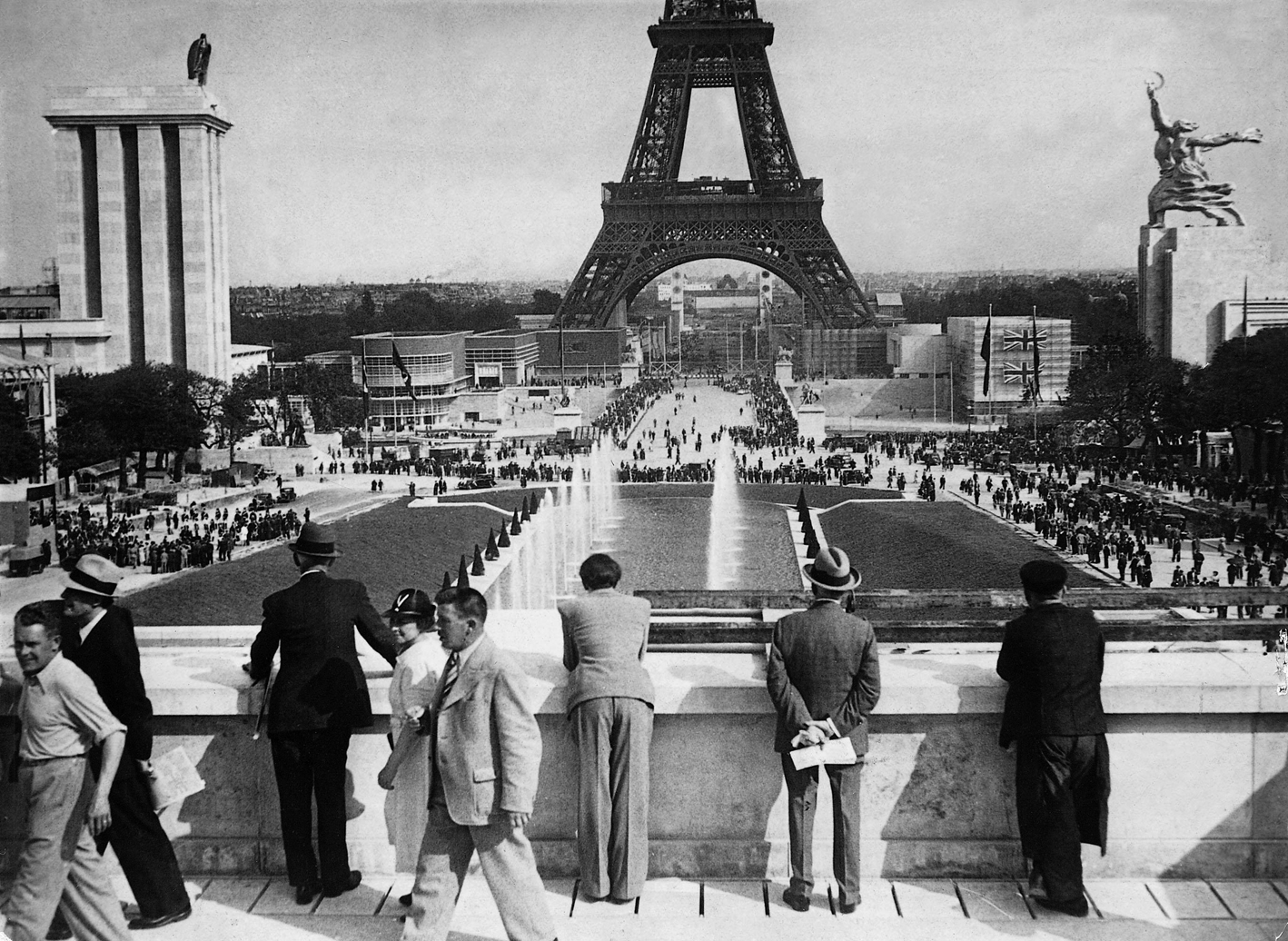 Figure 1. Visitors look out over the grounds of the International Exhibition in Paris, 1937.