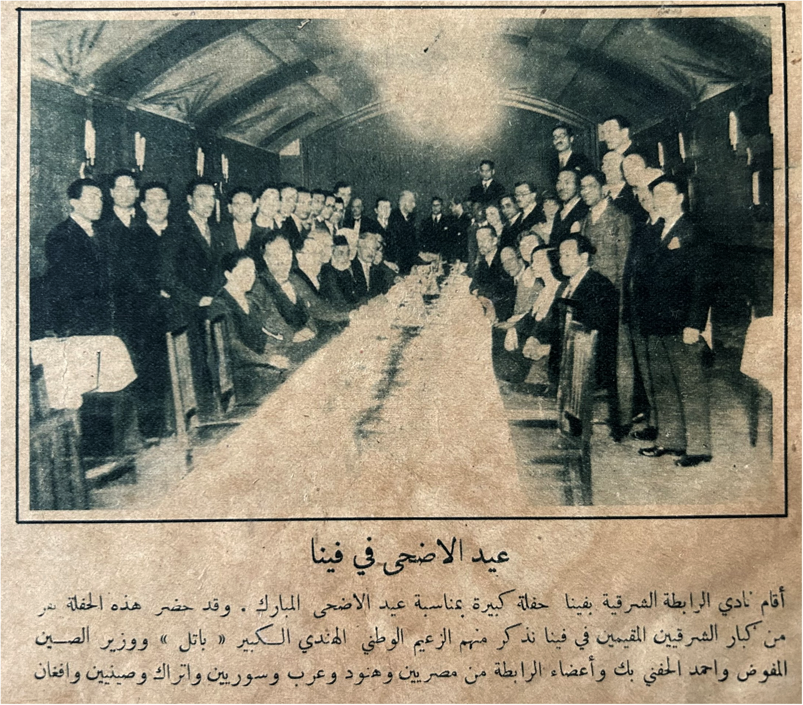 Figure 1. A group picture of attendees of the 'Id ul adha event organised by the Orientbund in 1932; see: 'id ul adḩa fi fiyanna ['id ul adḩa celebrations in Vienna], al-musawwar, 20 May 1932.