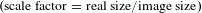 $(\text{scale factor}=\text{real size}/\text{image size})$