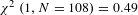 $\unicode[STIX]{x1D712}^{2}\;(1,N=108)=0.49$