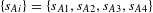 , while $\{s_{Ai}\}=\{s_{A1},s_{A2},s_{A3},s_{A4}\}$