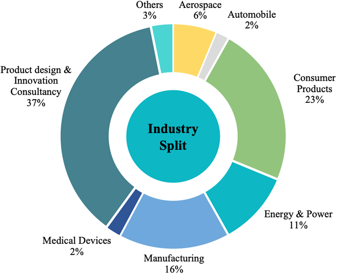 To obtain industrial insights, consumer product design companies (350) from different countries and different industries ranging from consumer products, design consultancy and aerospace to automobile were selected as survey participants. An invitation email was sent to respondents to take part in this survey. The survey was deployed via the Qualtrics platform. Access to this survey was given to participants by a link in the invitation email, to protect participants’ privacy. All the responses were recorded anonymously. This privacy protocol was mentioned in the invitation email. Participants’ consent to participate in the survey was implied by completing and submitting the online questionnaire. Before sending the survey to participants, the questionnaire was tested with participants working with or aware of the product design for MI. Feedback from this pilot was used to modify the questionnaire more appropriately. Responses were recorded and used further for descriptive analysis. This analysis is interpreted and presented in the following sections to reflect on industrial insights and implications.