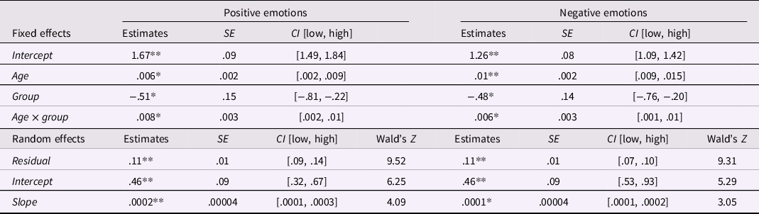 Table 2. Fixed and random effects of the best fitting models for emotional discrimination