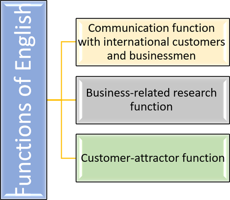 i. Communicative functions with international customers and businesspeople; i.e., English helps business owners to communicate with international customers and businesspeople;