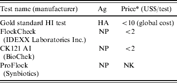 Furthermore, AI vaccines may promote the selection of mutation in the circulating virus and thereby perpetuate the risk of infection in the original species or in another. For example, the H5N2 vaccines that have been used in Mexico since 1995 might be, among other factors, at the origin of an antigenic drift of the field virus away from the vaccine strain [Reference Lee, Senne and Suarez54]. If this were to occur, the vaccine protective efficacy would be impaired in time and the use of this specific vaccine strain would eventually become obsolete. For these reasons an efficient monitoring of circulating virus within vaccinated flocks is essential. This represents a major constraint for developing countries due to economic and practical limitations.
