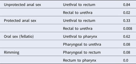 Table 1. Transmission probabilities per sexual act [Reference Hui34]
