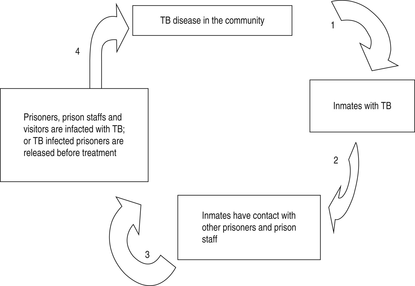 Prisoners usually come from communities with higher TB prevalence rates and bring with them an unhealthy lifestyle [Reference Reyes74]. Because of ignorance, neglect, or lack of means for screening, infected prisoners may enter prisons [Reference O'Grady3]. Prisons concentrate individuals usually in overcrowded and unhygienic environments and limit access to healthcare services [Reference Reyes74]. Overcrowded prisons facilitate the spread of TB, because prisoners are in close contact with others without access to outside spaces. Living together in cramped quarters with no ventilation is another major factor for contracting TB [Reference Reyes74]. Another aspect facilitating TB communication is that prisoners are often highly mobile within the system; inside the prison, between different prisons and institutions of the judiciary system, as well as healthcare institutions. Prison staff and visitors come and go as well. This pattern clearly indicates TB in prisons is not only of concern for prisoners, but also for the wider community [Reference Greifinger, Heywood and Glaser75]. In 2010 Baussano et al. [Reference Baussano76] reported the fraction of TB in the general population attributable to transmission from prisons to be 8·5% in high-income countries and 6·3% in middle- or low-income countries. The prison setting is therefore becoming the place for concentrating, disseminating, and worsening TB, including MDR-TB, and even for exporting it into the general population. The question at present is what to do about what was until very recently ‘a forgotten and neglected disease’ [Reference Coninx77].