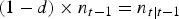 $\left( {1 - d} \right) \times n_{t - 1} = n_{t\vert t - 1} $
