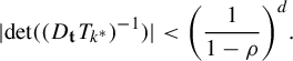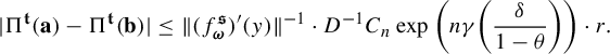$$ \begin{align} \eta_k&\{t_k\in B_{{\Omega}_k}(s_k, \delta):\! |\Pi^{t_k}_k({\textbf{ i}})-\Pi^{t_k}_k({\textbf{j}}) |< r\}\nonumber\\ &\leq C e^{|{\textbf{i}}\wedge {\textbf{j}}| \psi(\delta)} \inf_{x\in \Sigma} \min\bigg\{ \frac{r^p}{\phi^p(D_{\Pi^{t_k}_kx}f_{\mathbf{i}\wedge \mathbf{j}, k}^{t_k})}:\! p=0,1,\ldots, q_k \bigg\}, \end{align} $$