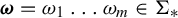 $\boldsymbol {\omega }=\omega _1\ldots \omega _m\in \Sigma _*$