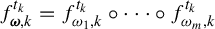 $f_{{\boldsymbol {\omega }},k}^{t_k}=f_{\omega _1,k}^{t_k}\circ \cdots \circ f_{\omega _m,k}^{t_k}$