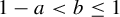 $$ \begin{align*}{\alpha}-a+jb>{\alpha}-a+\bigg(\frac{1+a-{\alpha}}{b}-1\bigg)b=1-b\end{align*} $$