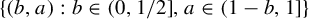 $\{(b,a): b\in (0,1], a\in (1-b,1]\} )$