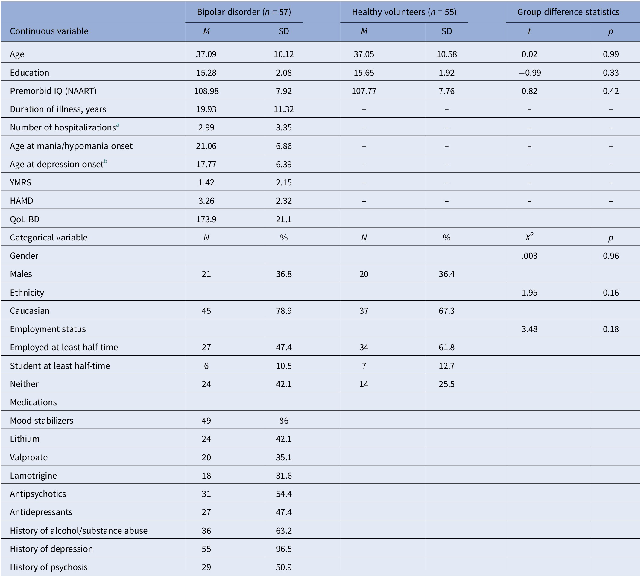 Table 1. Demographic and clinical characteristics for individuals with bipolar disorder and healthy participants.
