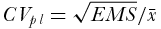 $CV_{pl} = \sqrt {EMS} /\bar x$