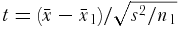 $t = (\bar x - \bar x_1 )/\sqrt {s^2 /n_1}$