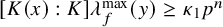$[K(x):K]\ge \kappa p^n$