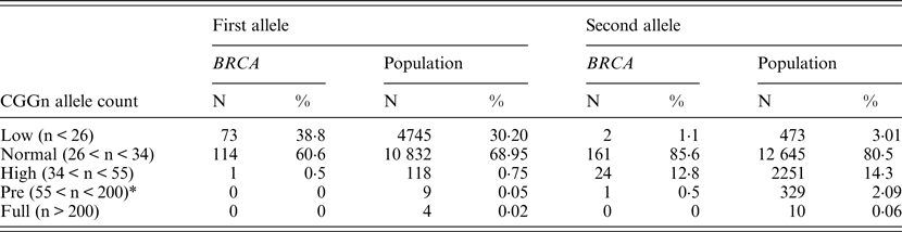 Table 2. FMR1 allelic distribution in BRCA1/2 carriers and the control population