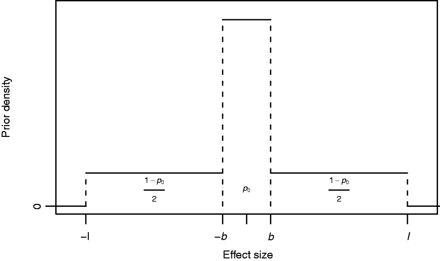 The main target in variable selection problems is to answer the question, whether we should consider a potential explanatory regressor to influence the outcome or not. This question is addressed by testing some statistical hypothesis. Specifically, testing marker inclusion means deciding in favour of or against a precise null hypothesis. The precise null hypothesis can be formulated in terms of a point null or an interval null (see Berger & Delampady, Reference Berger and Delampady1987; Berger & Sellke, Reference Berger and Sellke1987). The latter corresponds to relaxing our conception of precise in the sense that a marker may exhibit some minuscule effect on the trait, which is, however, to be considered as of no practical interest. Use of BFs as a measure of evidence in genetic association and mapping studies has been motivated, at least, by the following properties: (1) they are similar to the likelihood ratio statistic, i.e. the evidence is compared against a null model (Lee & Thomas, Reference Lee and Thomas2000), (2) they are able to combine evidence from multiple data sources (see Ball, Reference Ball2007; Wakefield, Reference Wakefield2008), (3) they provide interpretation (unlike P-values) independent from sample size (Wakefield, Reference Wakefield2009) and (4) ‘(they) may be used routinely to interpret ‘significant’ associations' (Ioannidis, Reference Ioannidis2008).
