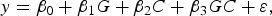 $$Y = {\beta _0} + \sum\limits_{k = 1}^4 {{\beta _k}{X_k}} + {\beta _{34}}{X_3}{X_4} + \varepsilon \comma \;$$