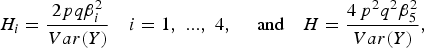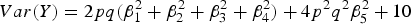 $Var\lpar Y\rpar = 2pq\lpar \beta _1^2 + \beta _2^2 + \beta _3^2 + \beta _4^2 \rpar + 4{p^2}{q^2}\beta _5^2 + 10$