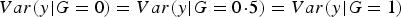 $Var\lpar y\vert G = 0\rpar = Var\lpar y\vert G =0\!\cdot\!5\rpar = Var\lpar y\vert G = 1\rpar $