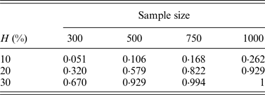 Table 5 shows that the marginal effects of interacting factors can affect the power and the dependence is monotonic in most cases. While some violation may exist for small H. The reasons that contribute to this contra-intuitive phenomenon are explained as follows (Struchalin et al., Reference Struchalin, Dehghan, Witteman, Duijin and Aulchenko2010): from the linear model given before, we can get