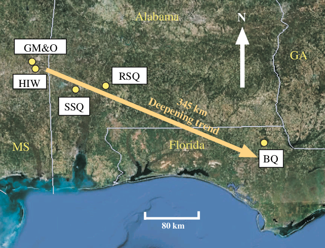 Tew, BH and Mancini, EA (1992) An integrated lithostratigraphic, biostratigraphic, and sequence stratigraphic approach to paleogeographic reconstruction: examples from the Upper Eocene and Lower Oligocene of Alabama and Mississippi. Gulf Coast Association of Geological Societies Transactions 42, 735–56.Google Scholar