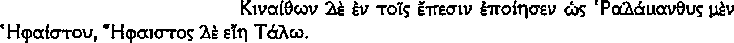… Gortys is mentioned previously as the son of Rhadamanthus. Malten, , Jahrb. d. D.A.I. xxvii, p. 264Google Scholar, wishes to emend to φαιστòς, since Hephaestus is not to be connected with Crete (cf. Plato, Cratyl. 407 c), and Phaestus was a town in the south of Crete (named after Phaestus, the son of Heracles according to Pausanias, ii. 6. 7).