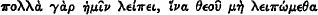 75  This is the point which he is trying to make in his forced, elliptic saying,  (v), ‘we are short of much (that we need to secure) if we are not to fall short of God,’ i.e. if we members of the Church are not to fail in our