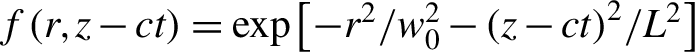 /c. A laser pulse with a Gaussian envelope and temporal profile propagating in the