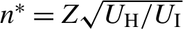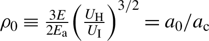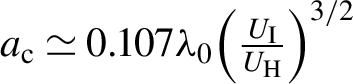 $$\begin{align}\Delta ={\left(\frac{3{E}_0}{2{E}_{\mathrm{a}}}\right)}^{1/2}\cdot {\left(\frac{U_{\mathrm{H}}}{U_{\mathrm{I}}}\right)}^{3/4}.\end{align}$$