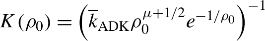$K\left({\rho}_0\right)={\left({\overline{k}}_{\rm ADK}{\rho}_0^{\mu +1/2}{e}^{-1/{\rho}_0}\right)}^{-1}$
