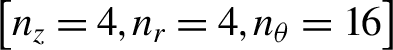 $\left[{n}_{{z}}=4,{n}_{{r}}=4,{n}_{\theta}=16\right]$