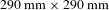 $290~\text{mm}\times 290~\text{mm}$