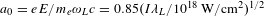 $a_{0}=eE/m_{e}\unicode[STIX]{x1D714}_{L}c=0.85(I\unicode[STIX]{x1D706}_{L}/10^{18}~\text{W}/\text{cm}^{2})^{1/2}$
