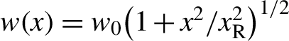 $w(x)={w}_0{\left(1+{x}^2/{x}_{\mathrm{R}}^2\right)}^{1/2}$ is the beam waist with