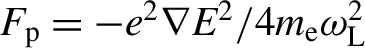 ${F}_{\mathrm{p}}=-{e}^2\nabla {E}^2/4{m}_{\mathrm{e}}{\omega}_{\mathrm{L}}^2$ in the linear limit (