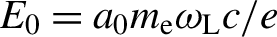 ${E}_0={a}_0{m}_{\mathrm{e}}{\omega}_{\mathrm{L}}c/e$ is the peak amplitude of the electric field, a 0 = 25 is the normalization amplitude of the laser pulse (corresponding to a laser intensity I ∼ 2 × 1020 W/cm2), m e is the mass of the electron,