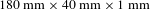 $180~\text{mm}\times 40~\text{mm}\times 1~\text{mm}$