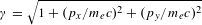 $\unicode[STIX]{x1D6FE}=\sqrt{1+(p_{x}/m_{e}c)^{2}+(p_{y}/m_{e}c)^{2}}$