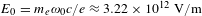 $E_{0}=m_{e}\unicode[STIX]{x1D714}_{0}c/e\approx 3.22\times 10^{12}~\text{V}/\text{m}$